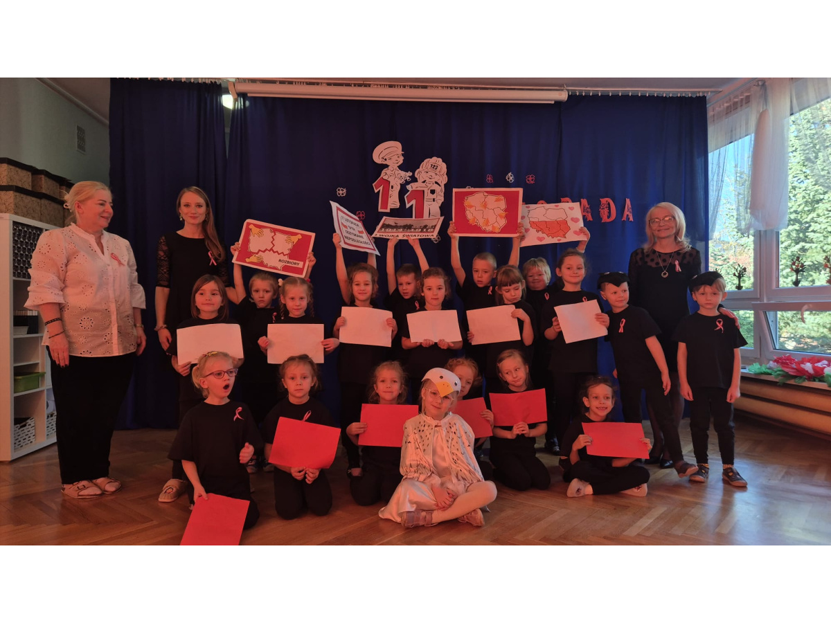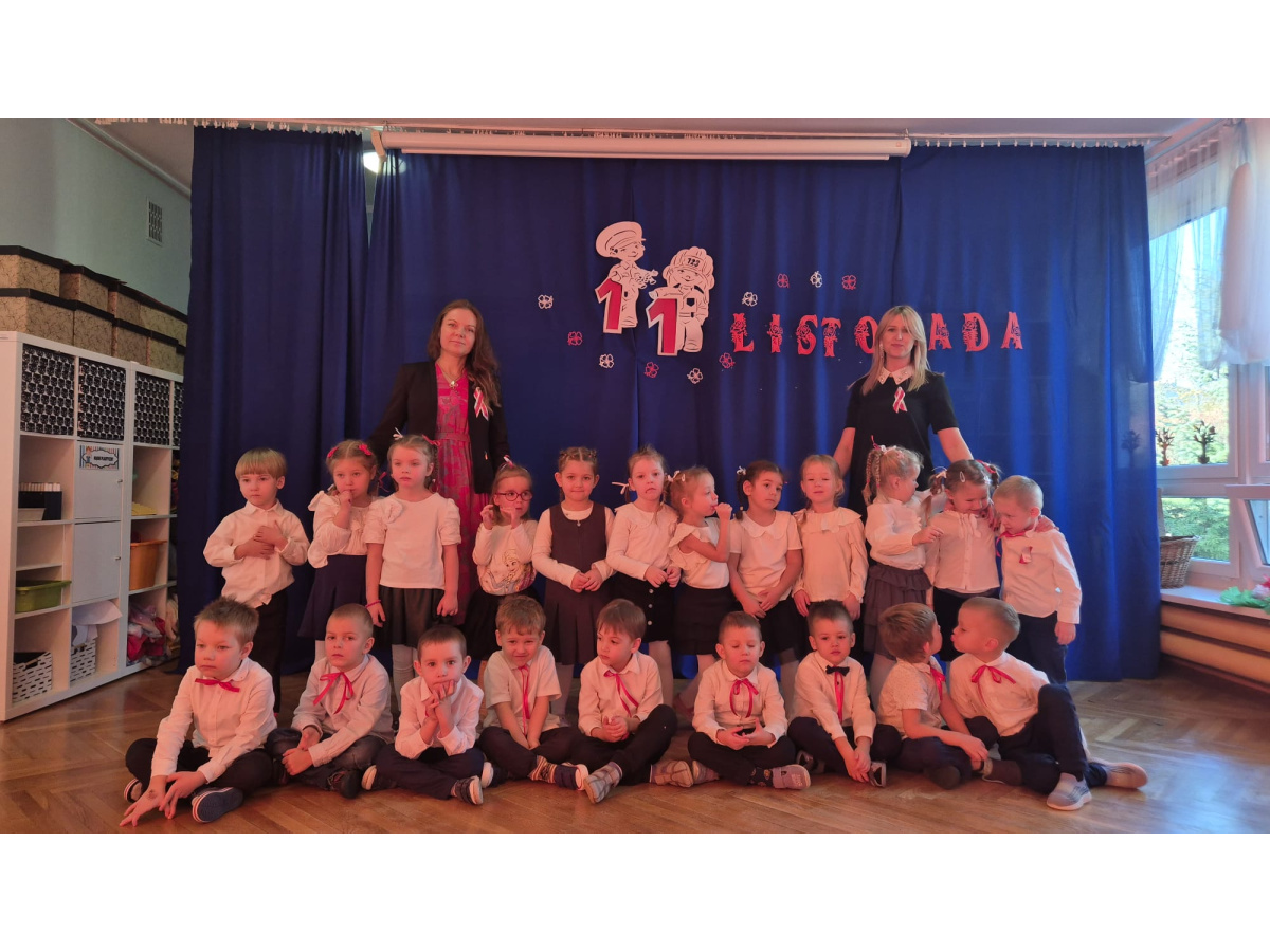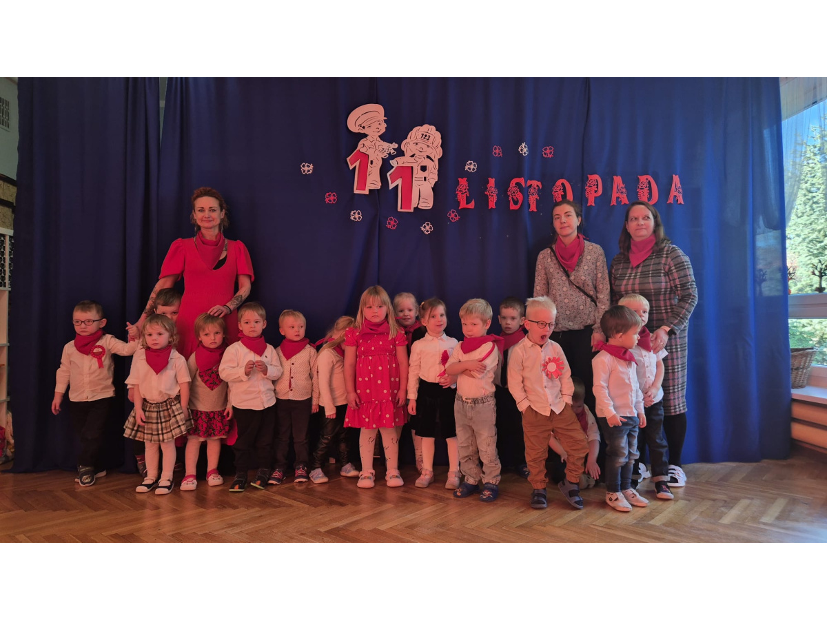 Z OKAZJI ŚWIĘTA NIEPODLEGŁOŚCI NASZE PRZEDSZKOLE UCZESTNICZYŁO W AKCJI "SZKOŁA DO HYMNU". DZIECI PODCZAS WYSTĘPÓW NA SCENIE POKAZAŁY SWOJĄ WIELKĄ MIŁOŚĆ DO KRAJU ORAZ ZNAJOMOŚĆ SYMBOLIKI NARODOWEJ.
