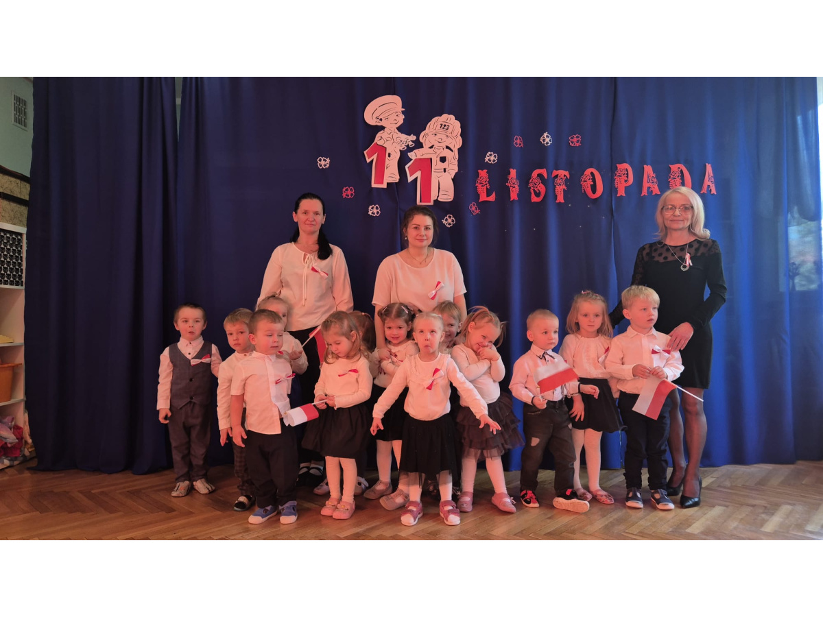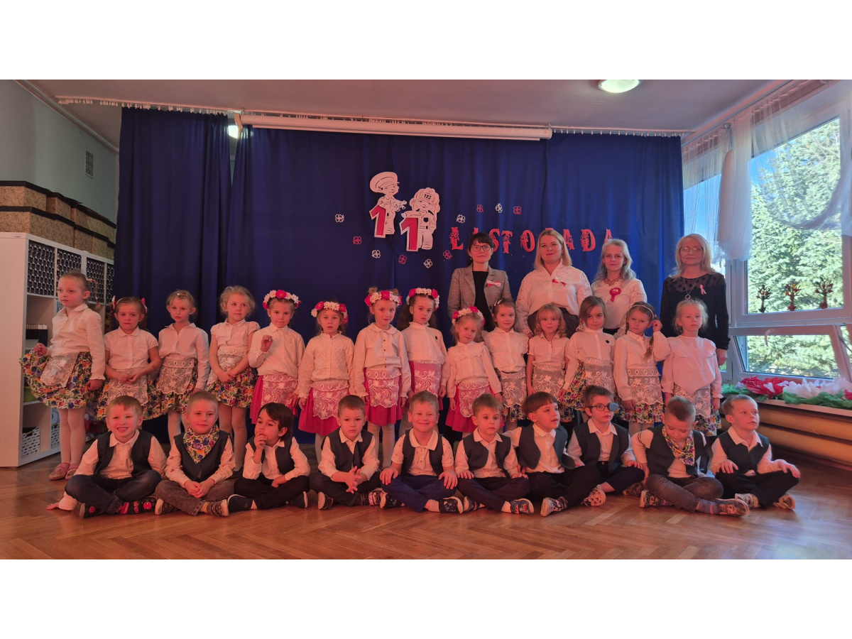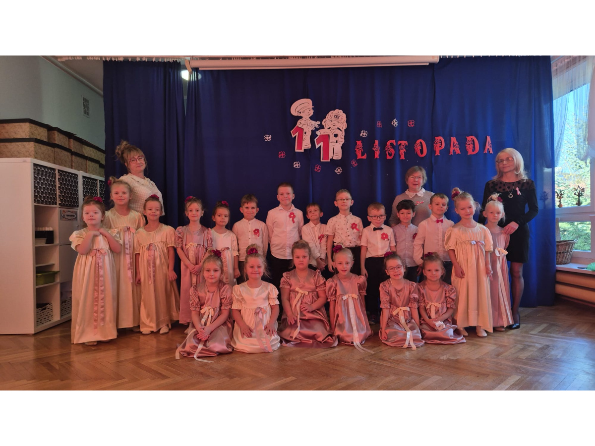 Z OKAZJI ŚWIĘTA NIEPODLEGŁOŚCI NASZE PRZEDSZKOLE UCZESTNICZYŁO W AKCJI "SZKOŁA DO HYMNU". DZIECI PODCZAS WYSTĘPÓW NA SCENIE POKAZAŁY SWOJĄ WIELKĄ MIŁOŚĆ DO KRAJU ORAZ ZNAJOMOŚĆ SYMBOLIKI NARODOWEJ.