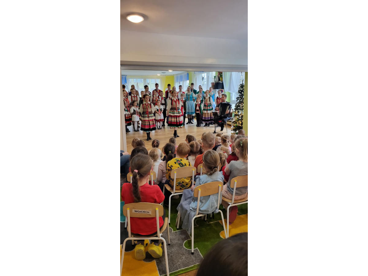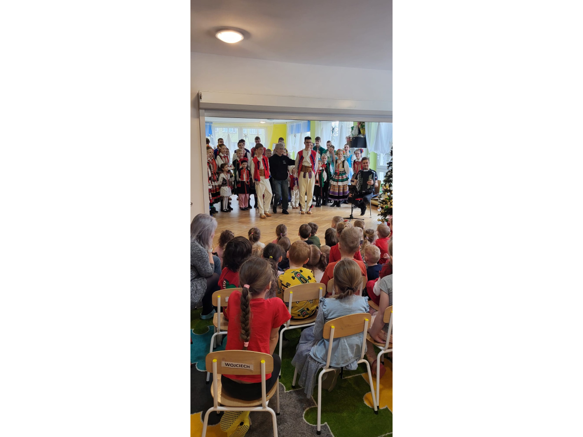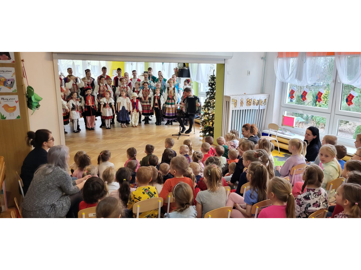 Dzień przed Wigilią w naszym przedszkolu zagościł Zespół Pieśni i Tańca "Płomienie". Swoim wyjątkowym koncertem kolęd i pastorałek naszemu Bożemu Narodzeniu artyści nadali jeszcze bardziej świątecznego charakter. Piękne, ludowe stroje i cudne nuty wielogłosowych śpiewów przy akompaniamencie akordeonu zachwyciły tych najmłodszych, jak i tych nieco bardziej dojrzałych melomanów...Serdecznie dziękujemy za tę muzyczną ucztę...