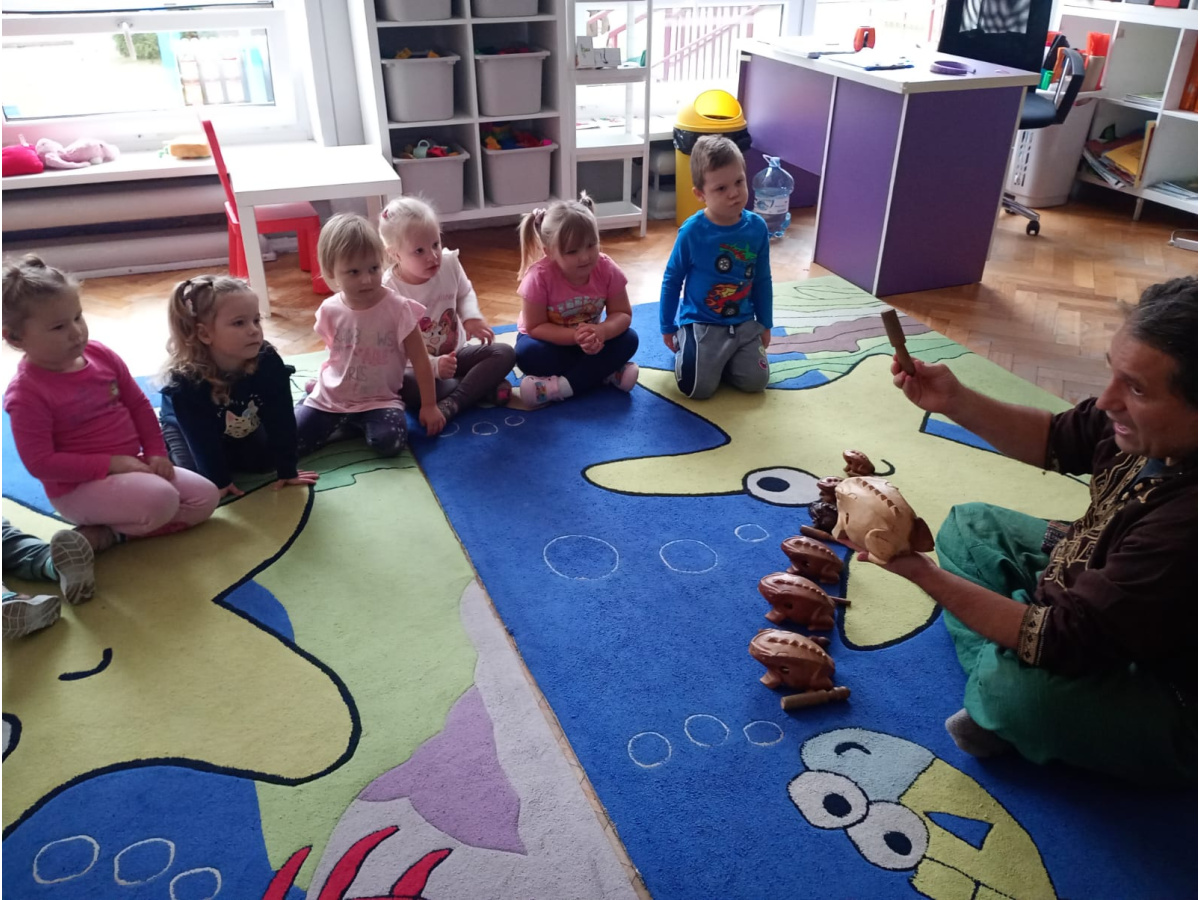 Dzieci wszystkich grup mogły posłuchać opowieści o instrumentach, a grając na nich samodzielnie przenieść się choć na chwilę do Indonezji.