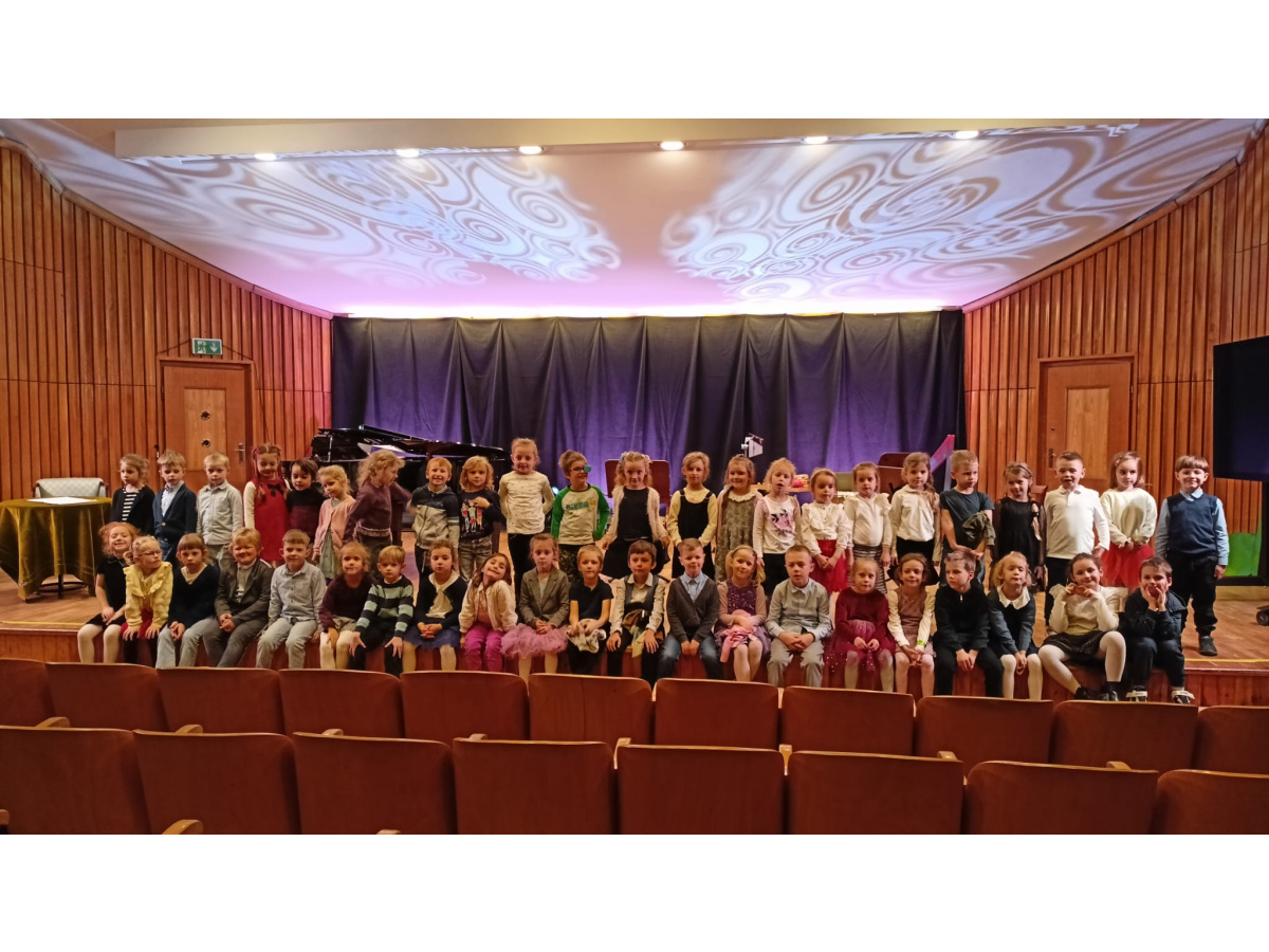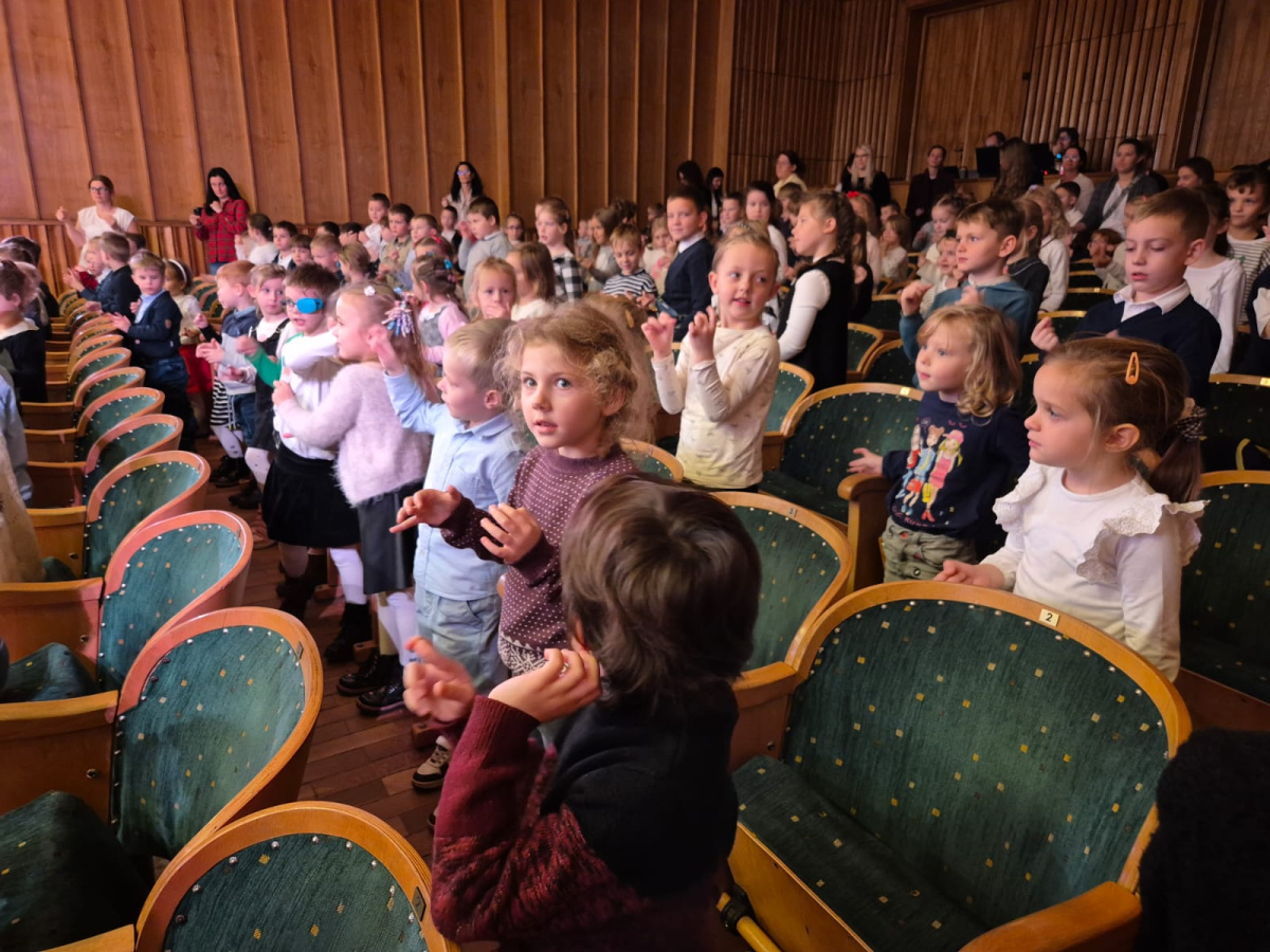 12.11.2025 dzieci z grupy Żabki oraz Sowy wybrały się do Filharmonii Pomorskiej na audycję muzyczną, której tematem była jesienna pogoda.