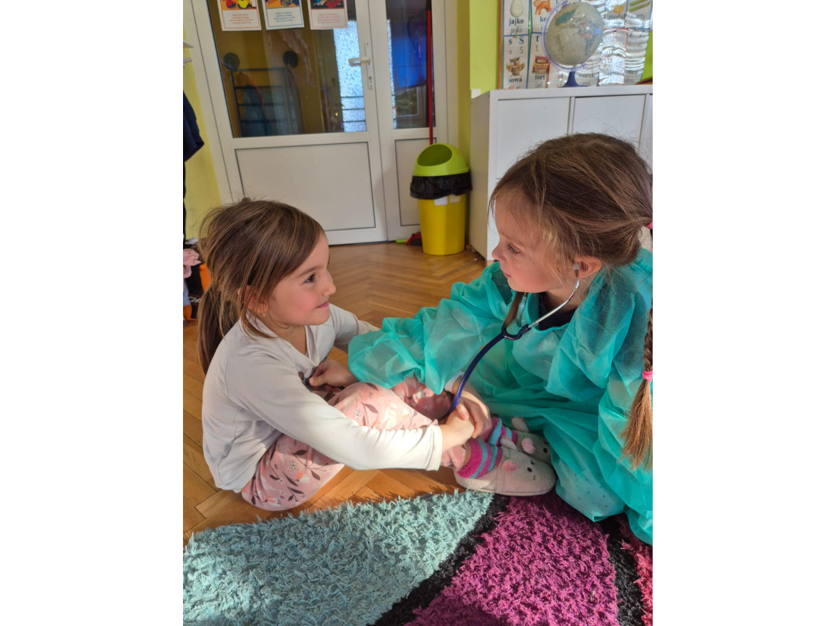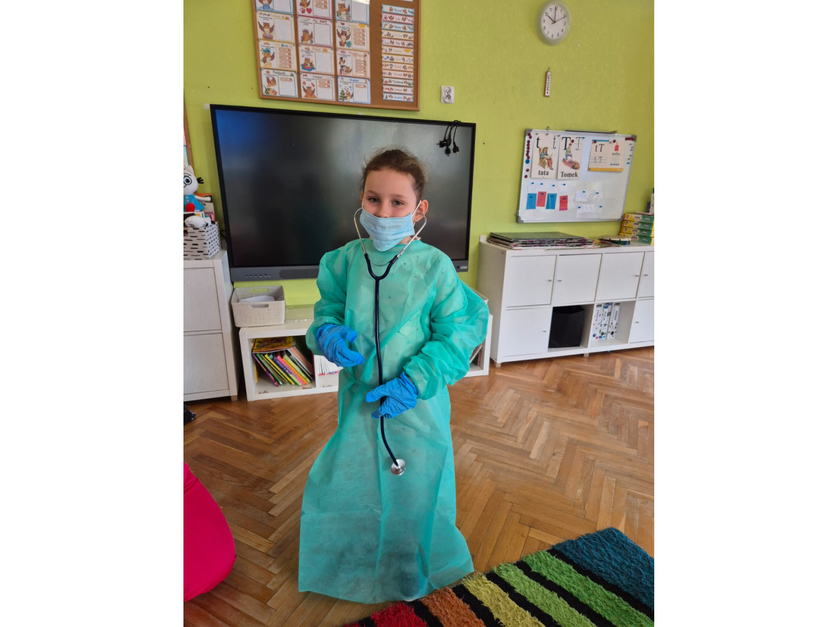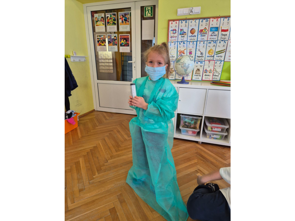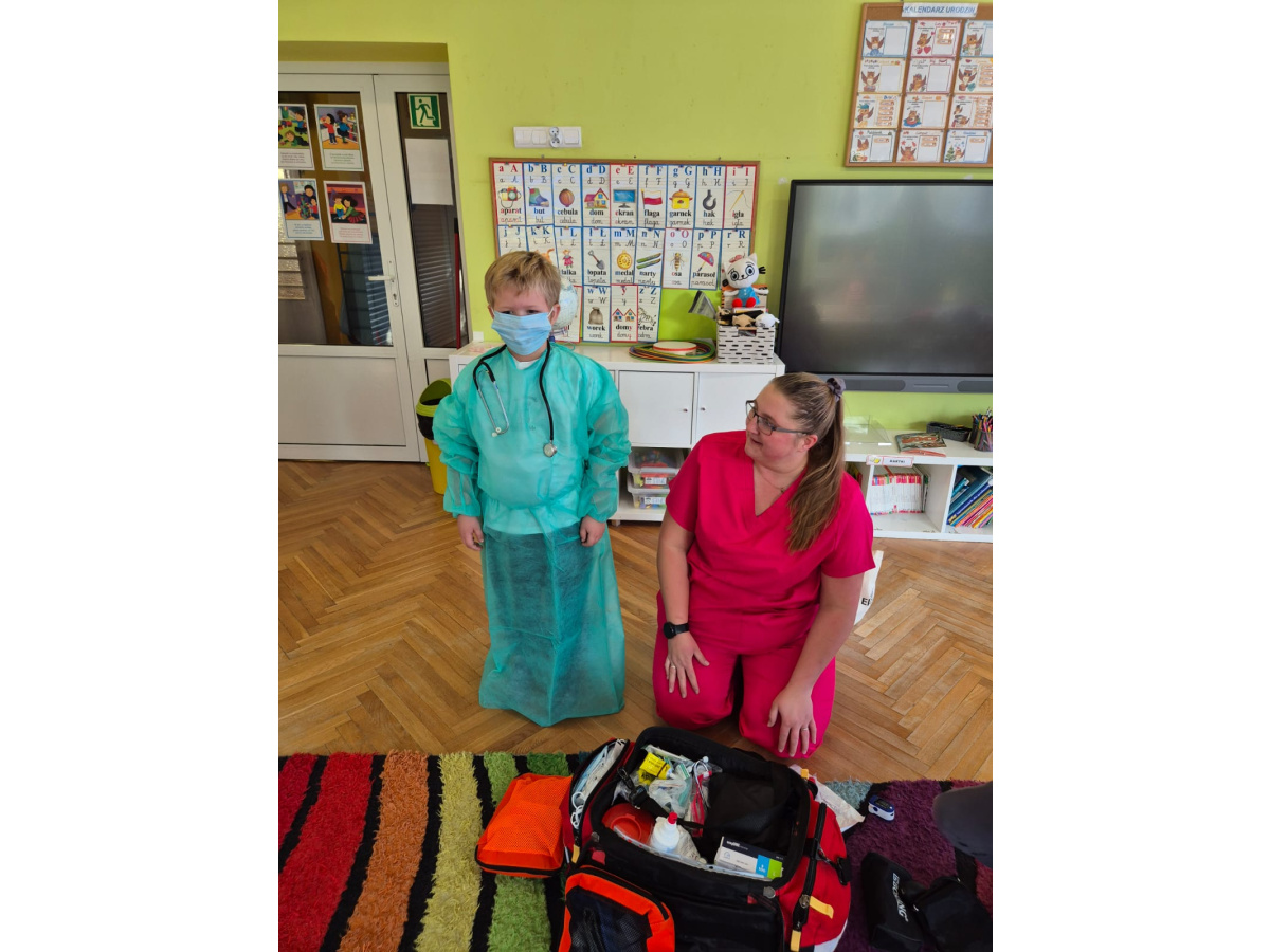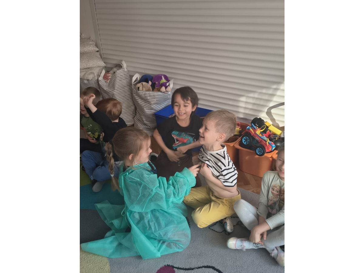 21 października przybył do naszego przedszkola niecodzienny gość- mama Marcelinki i Eryka- Pani Milena, która z zawodu jest pielęgniarką. W bardzo ciekawy sposób opowiedziała nam czym zajmuje się pielęgniarka, na czym polega jej praca oraz gdzie można spotkać pielęgniarki. Pani Milena zaprezentowała dzieciom przedmioty niezbędne do wykonywania tego zawodu i wyjaśniła do czego służą. Przedszkolaki z grupy III i IV miały okazję obejrzeć strzykawki, bandaże, ciśnieniomierz, pulsoksymetr i stetoskop. Dzieci mogły posłuchać bicia serca, zabandażować nogę lub rękę swojego kolegi. Pokonały lęk przed zabiegami medycznymi, a przede wszystkim wzbogaciły i utrwaliły wiadomości na temat sposobów dbania o swoje zdrowie.