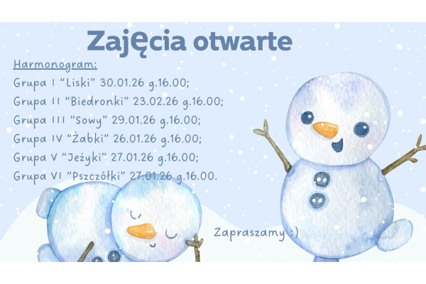 Serdecznie zapraszamy wszystkie dzieci wraz z rodzicami na zajęcia otwarte. Będzie nam miło jeśli wspólnie spędzimy czas na kreatywnych zabawach. Prosimy o zabranie obuwia zmiennego. Zapraszamy!