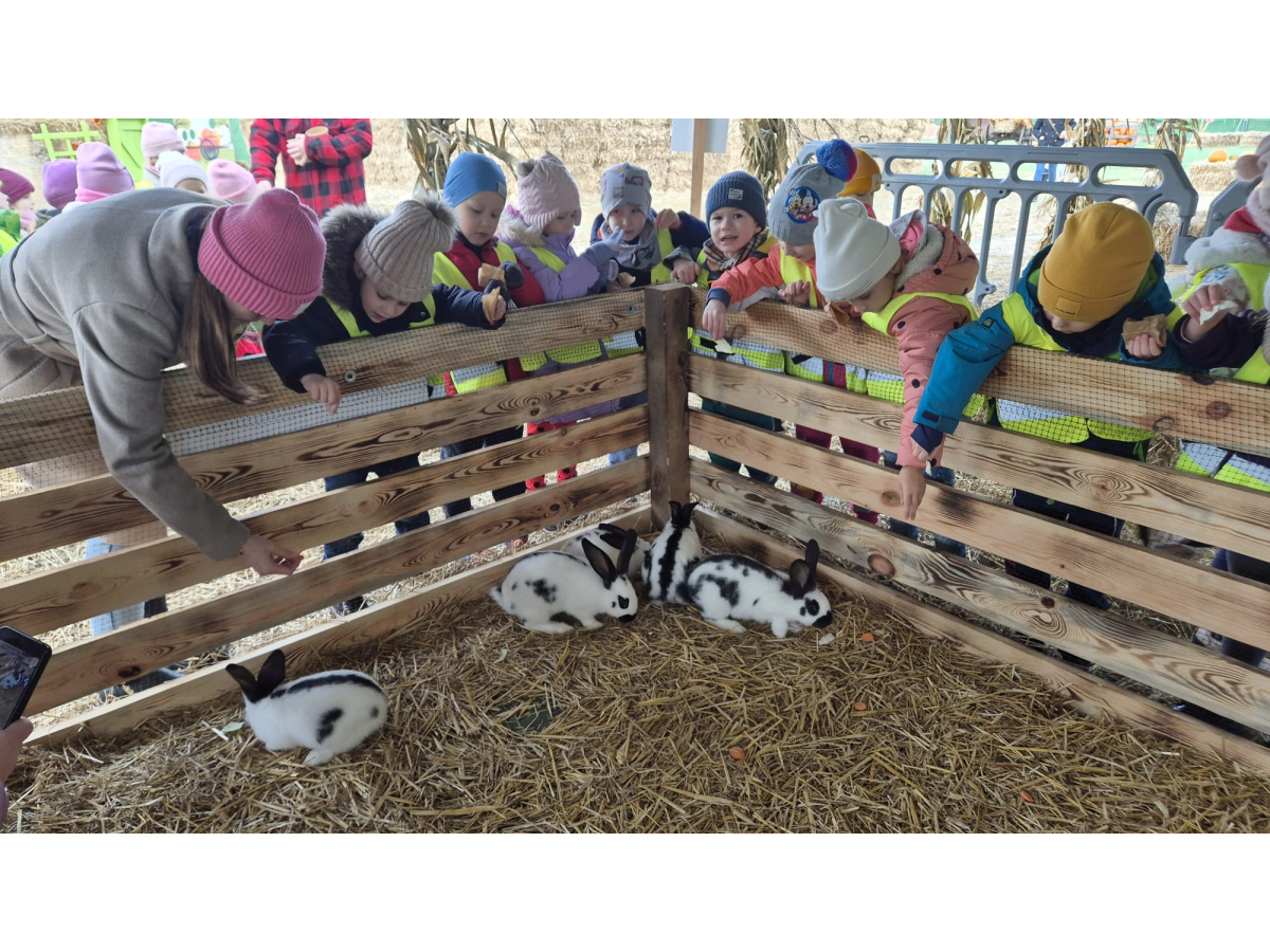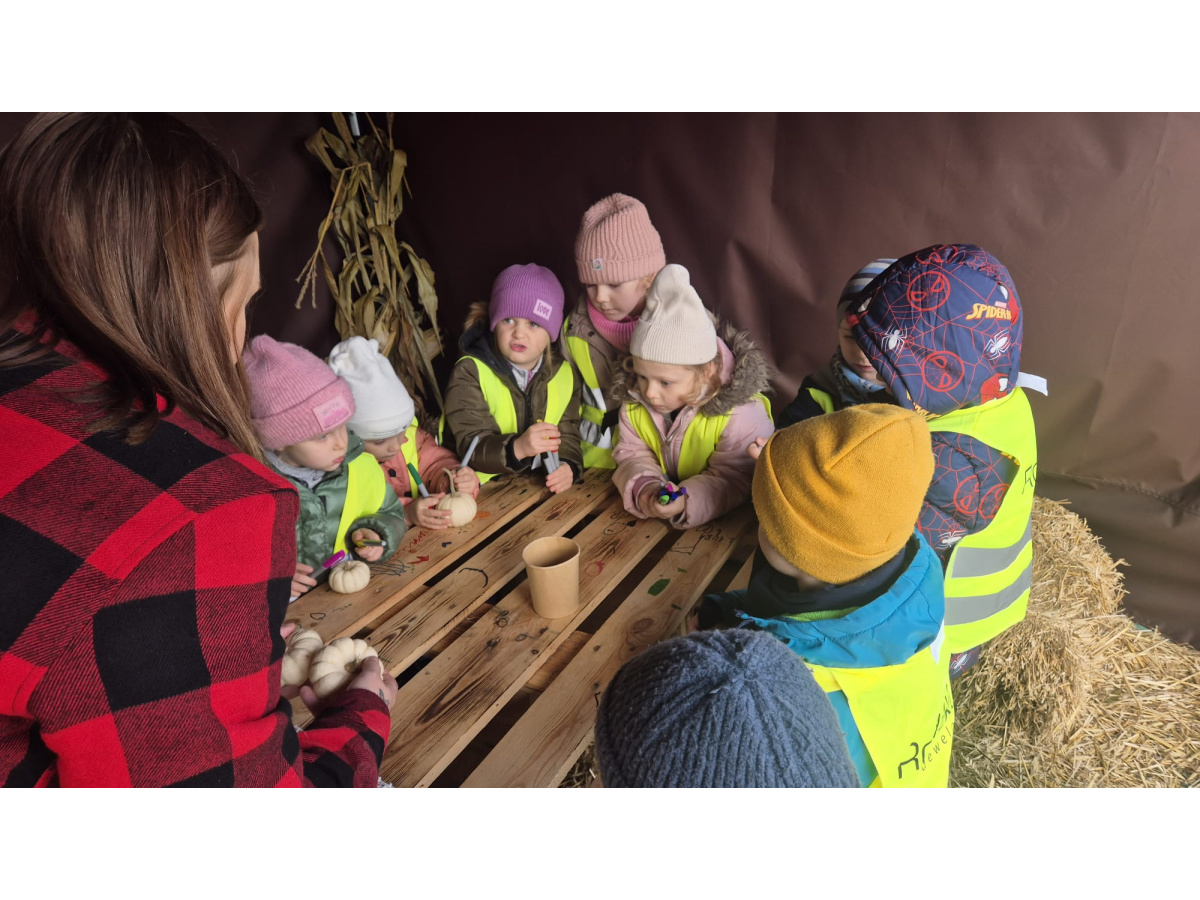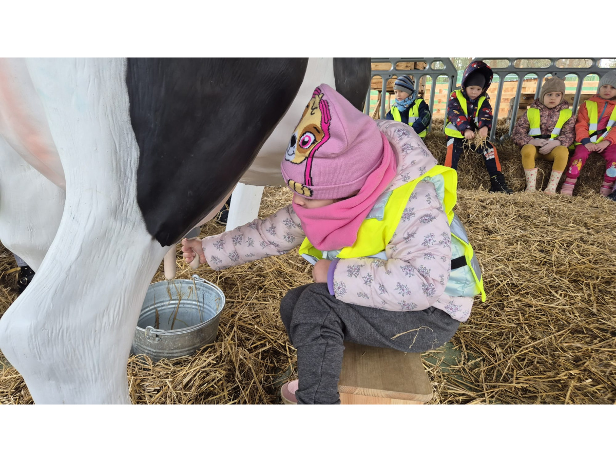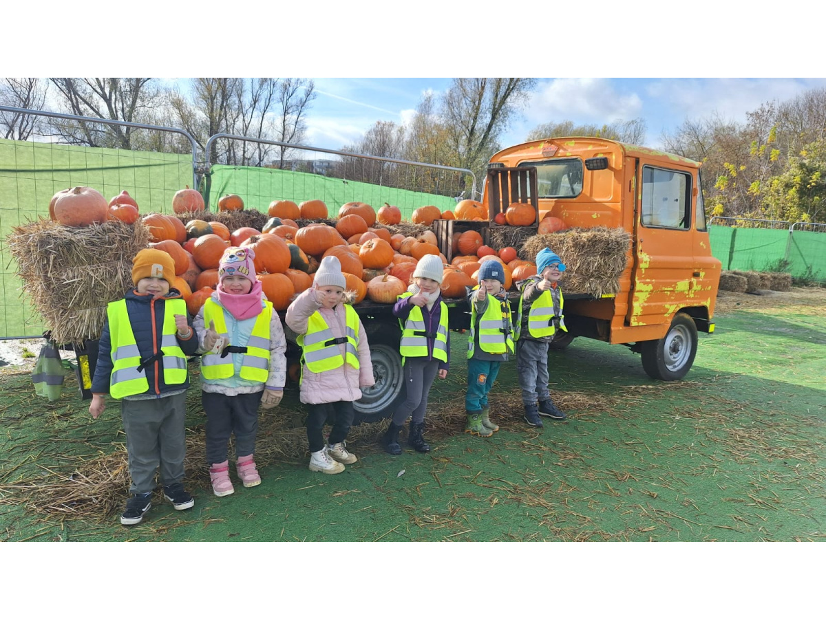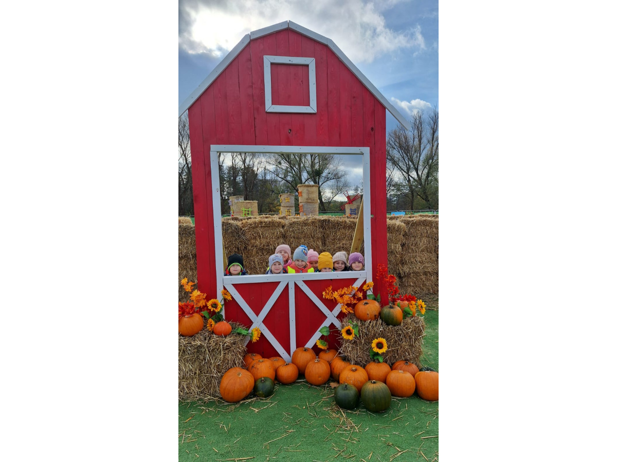 W ramach Święta Dyni..29 października nasze Żabki wzięły udział w warsztatach na farmie dyniowej...Spotkały się również ze zwierzątkami i mogły spróbować swoich sił przy dojeniu krowy...Zabawom nie było końca...